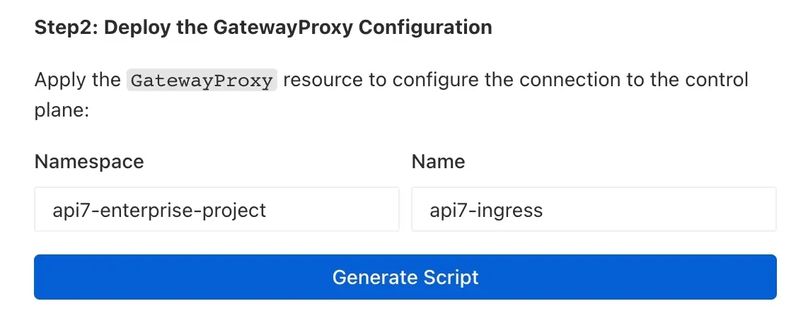 api7-ingressin the Name field. - Click Generate Script.